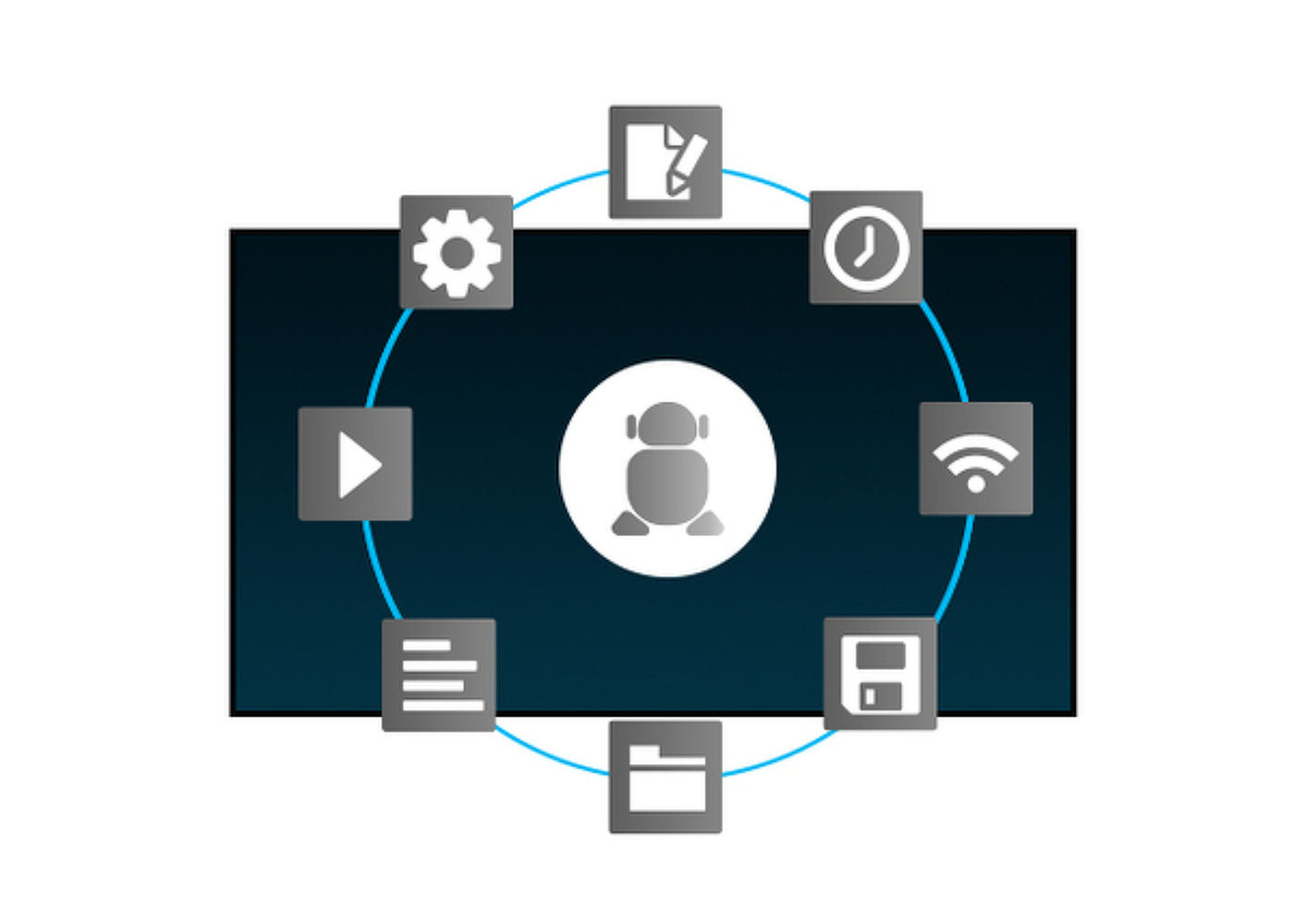 " Grâce au système d'exploitation Android vous pouvez facilement personnaliser l'affichage en fonction de vos besoins en y installant directement des applications.
