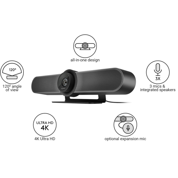 Logitech 960-001102 - MeetUp Solution de Visioconférence 4K pour les Salles de Réunions Moyennes à Grandes