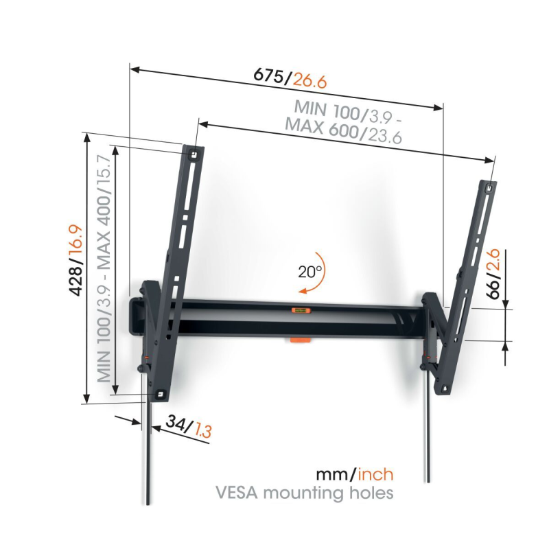 Support Mural Inclinable Pour Ecrans 65" Max 25 kg