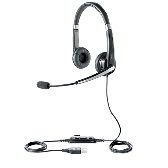 Le Jabra UC VOICE 550 Duo est un micro-casque filaire spécialement conçu pour les communications unifiées. Il s'adresse aux utilisateurs professionnels qui en font un usage nomade occasionnel et qui privilégient le port de coussinets classiques en similicuir.